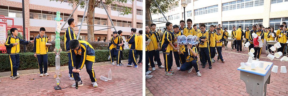 物理社团的“水火箭”、“空气大炮”实验引发阵阵惊叹。
