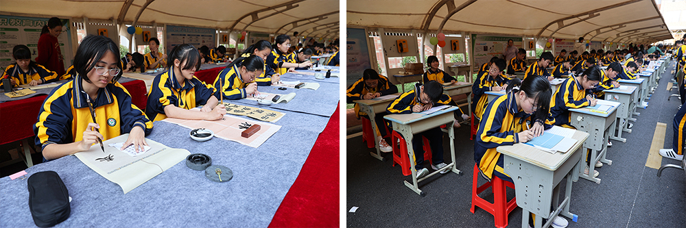 书法社团的楷隶行草气韵生动。