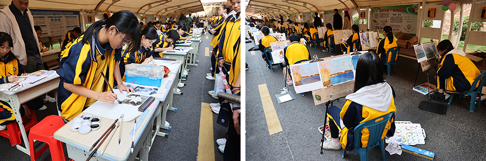 绘画社团的水粉、素描作品笔触细腻,色彩层次丰富。