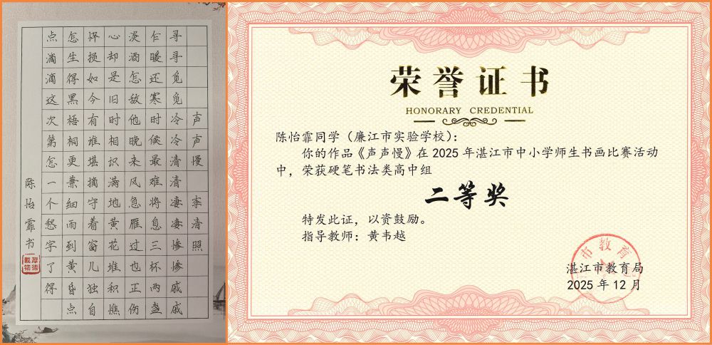 《声声慢》陈怡霏(硬笔书法类)(指导教师:黄韦越)