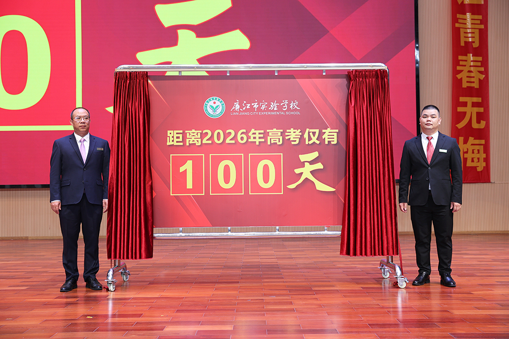 开学伊始,廉江市实验学校2026届高考百日誓师大会在艺术馆隆重举行。廉江市实验学校董事长陈武杰、校长罗吉祥等领导出席大会。大会由陈志良副校长主持,高三、高补全体师生参加大会。