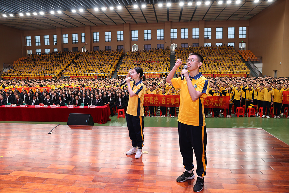 学生代表和教师代表先后发言。学生代表以铿锵誓言表达了对梦想的执着追求和对高考的必胜信心,号召全体同学珍惜百日时光、全力以赴迎接挑战。教师代表则用饱含深情的语言,回顾往届学子逆袭圆梦的奋斗故事,勉励学生坚定信念、科学备考,并郑重承诺全体教师将全力以赴陪伴学生备战高考,做他们最坚强的后盾。