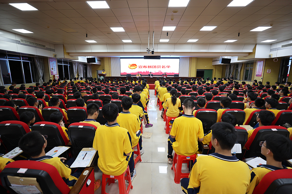 为深入学习贯彻习近平总书记对青年一代的殷切嘱托,持续夯实我校团组织建设,11月13日晚,廉江市实验学校2025-2026学年度第一学期新团员入团宣誓仪式在厚德楼六楼会议室隆重举行。学校党委副书记、副校长陈志良,学校团委书记、体卫艺处主任周宏波,体卫艺处副主任莫土广,全体新团员和团支书共1000余人参加,共同见证这一为青春加冕的光荣时刻。