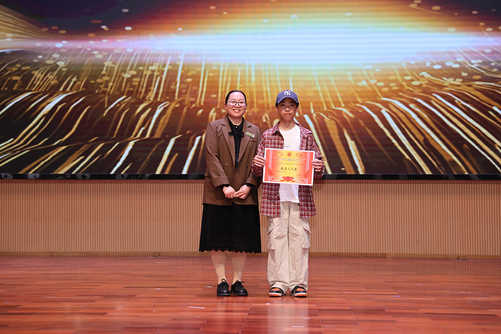 学校副校长、初中部校长黄俊芬为二等奖颁奖