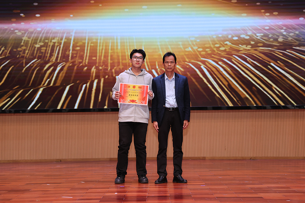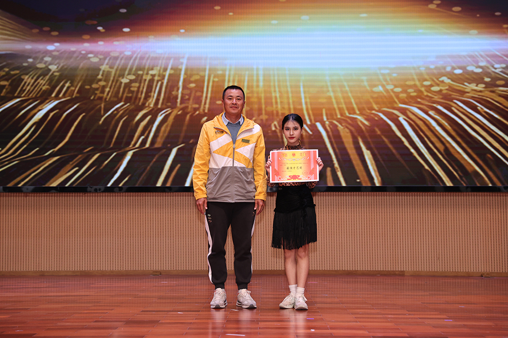 学校团委书记、体卫艺处主任周宏波为最佳才艺奖颁奖