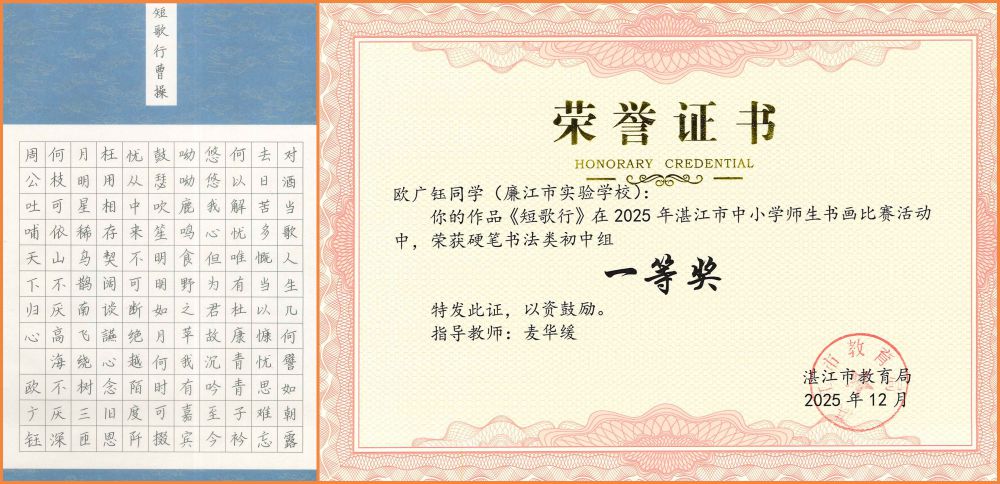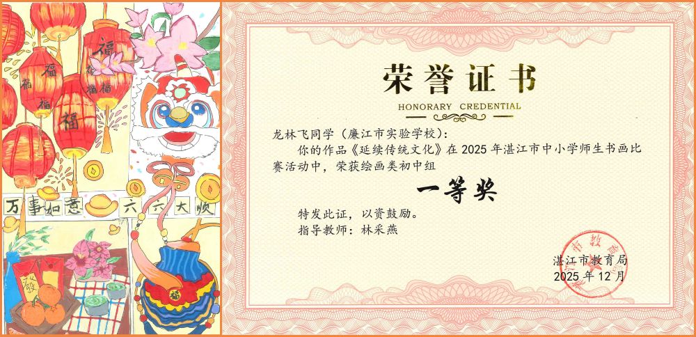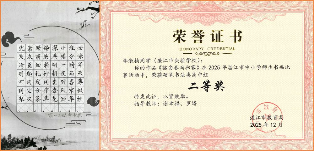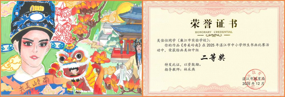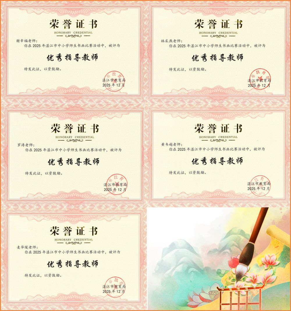 墨香润心育桃李,画笔传情绘中华。近日,以“粤彩染学堂 丹青绘中华”为主题的2025年湛江市中小学师生书画比赛圆满落幕。作为全市中小学艺术教育成果的重要展示平台,本次赛事旨在提升中小学师生审美素养与艺术创作能力。
