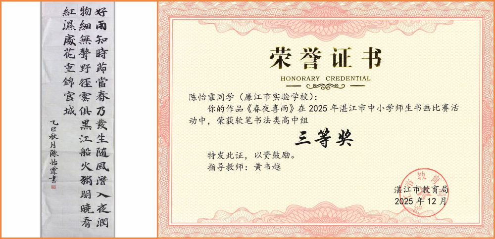 此次载誉而归,既是我校师生艺术才华的集中展现,更是学校深耕素质教育、厚植美育沃土的丰硕成果。长期以来,我校始终坚持“以美育人”的教育理念,将书画艺术教育融入日常教学,通过开设特色课程、举办校园书画展、搭建校外交流平台等多种形式,为师生提供多元成长空间,让艺术之花在校园处处绽放。