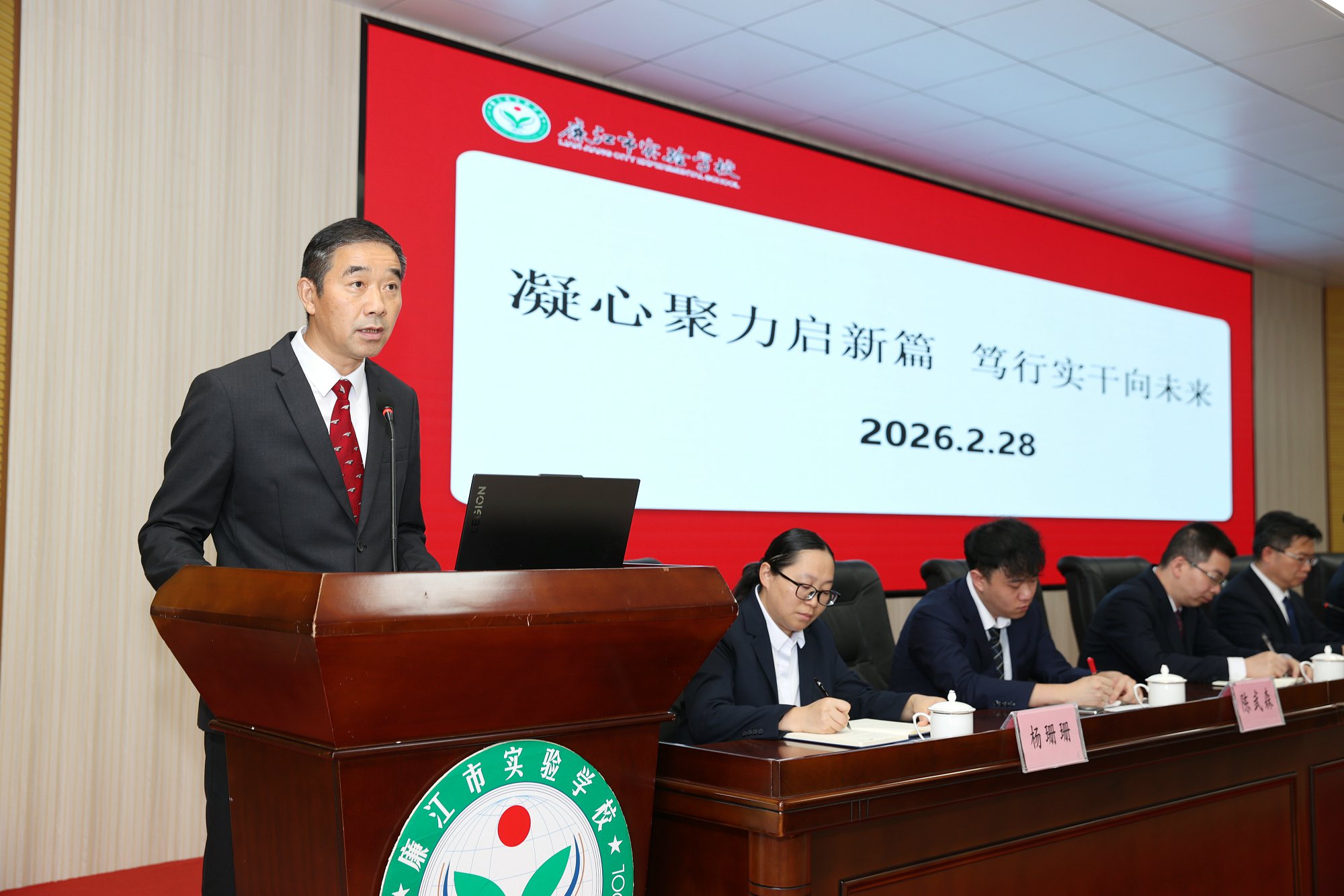 2026年2月28日上午,廉江市实验学校召开2026年春季学期开学工作会议。廉江市实验学校董事长陈武杰,校长罗吉祥等领导出席会议。会议由副校长陈志良主持,各学部、各处室负责人及全校教师参加。