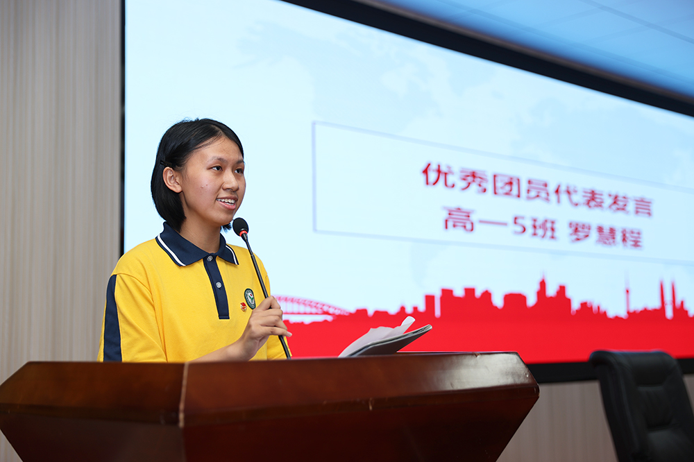 老团员代表高一(5)班罗慧程同学认为,入团不应停留在形式层面,而应作为鞭策自身不断进取的标准。她鼓励新团员们需真正从思想上融入团组织,始终以昂扬向上的精神面貌,尽心尽力地为社会、学校与班级作出贡献。