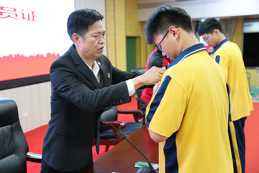 校领导逐一为新团员代表佩戴团徽、颁发团员证。这是荣耀的见证,更是责任的镌刻。他们眼眸里盛满骄傲与笃定,深深感受着团组织给予的信任与期望。