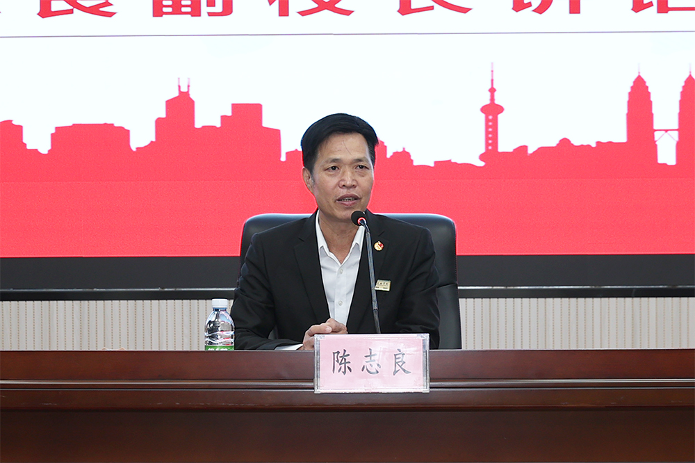 学校党委副书记、副校长陈志良首先对全体新团员的加入表示热烈祝贺,并提出三点要求:一要坚定理想信念,树立正确三观;二要养成严于律己的良好习惯,遵守团章校规,以实际行动助力学校高质量发展;三要锤炼良好品德,以身作则影响身边同学,让团徽闪耀光彩。
